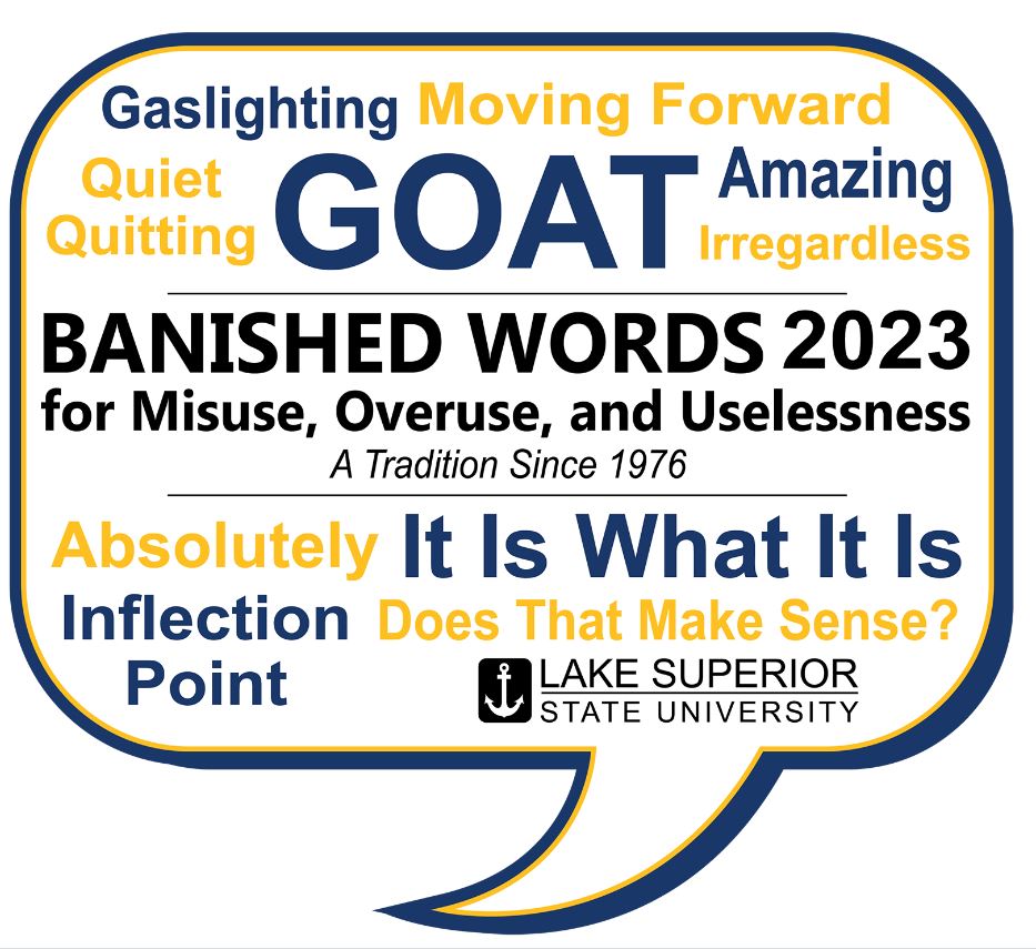 Since 1976, Lake Superior State University (LSSU) has compiled an annual list of words to be banned. For years, it was described as words to be “banished from the Queen’s English for misuse, overuse and general uselessness.” The press release for 2023 is even more blunt: